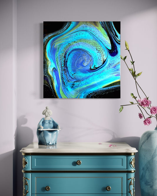Blue Galaxy Fluid Art 24"x24" Canvas