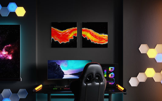 Dragon Glam - Set of 2 20"x20" Black Light Fluid Art
