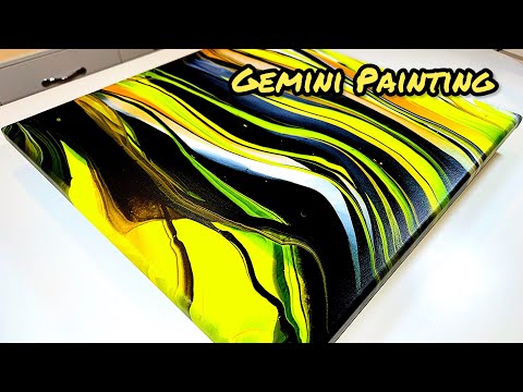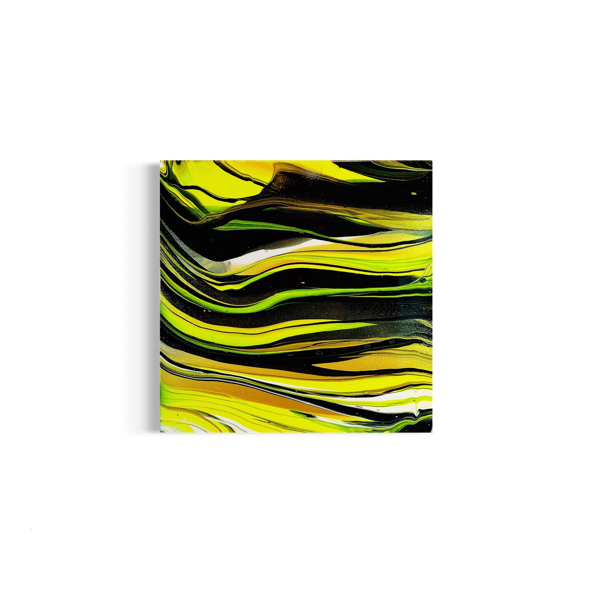 I painted this piece using my "scoop and fold" technique with black, white, yellow, and gold acrylic paint on a gallery-wrapped 18x18 inch canvas.